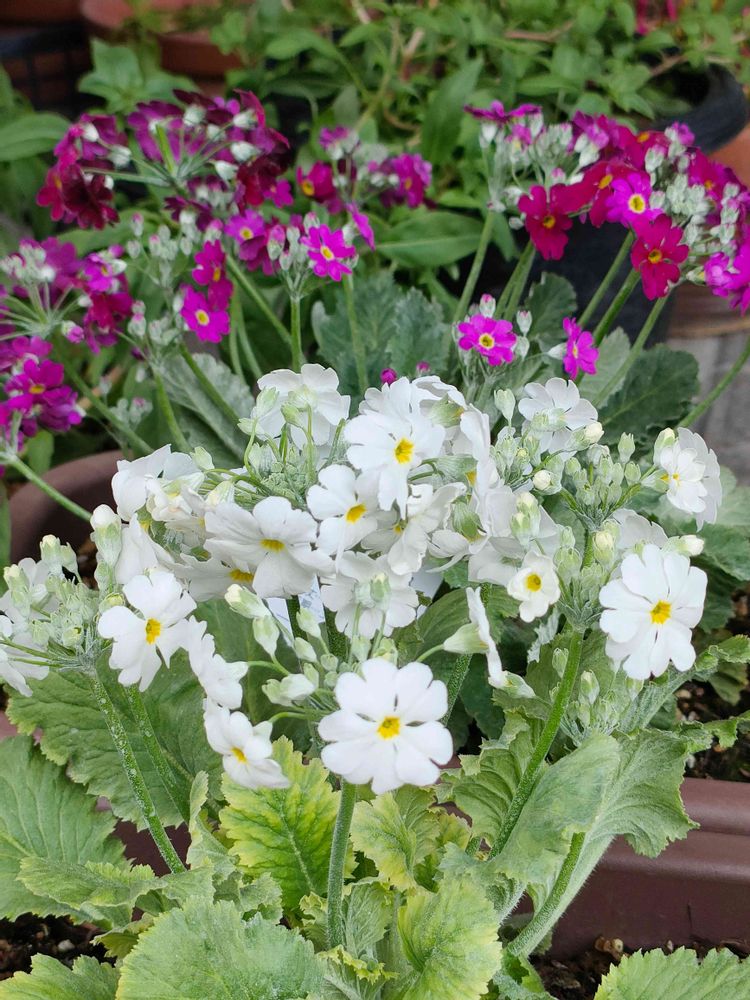 玄関口に置いてるプリムラのお花も元気に咲いています☺️
