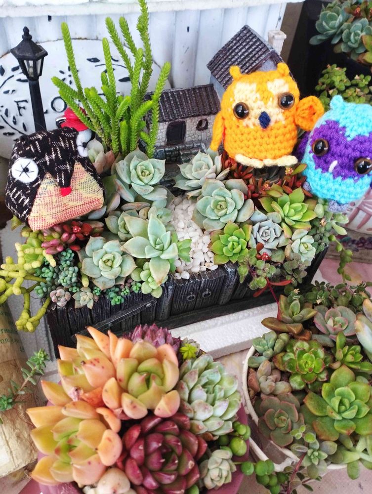 ステキな寄せ植えに可愛い🦉にちゃんキュンキュン(^_-)-☆