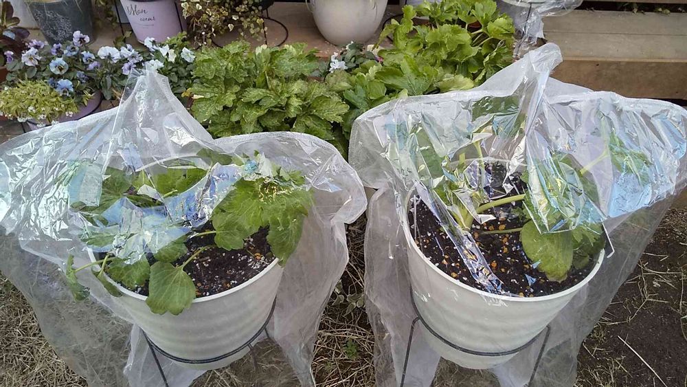 新入りのアフロディーテ、ディオニュソス、ヘラはまだ寒さに慣れていないため、防寒用に衣類用の不織布とビニールのカバーを被せました。