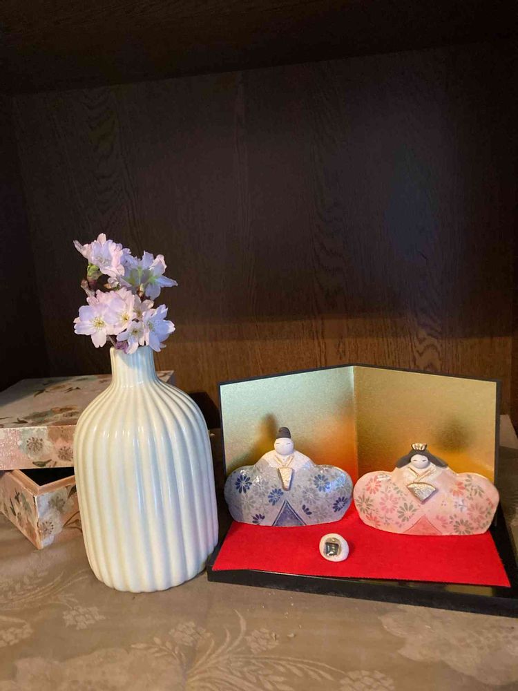 ありがとうございます💕多治見の陶器ギャラリーに行った時に、見つけた小さなお雛様で、着物の柄も可愛いなと思って。オシャレって言ってもらえて嬉しいナ〜🥰