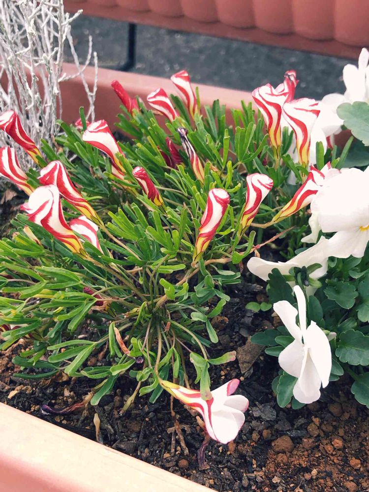 プランターで寄せ植えしてるんだけど、隣りに合わせる花が難しくて、結局白いビオラを真ん中に両端にシルバーのプラチーナともみじ葉ゼラニウムにしたのよね。何も考えずお迎えするのがいけないんだけどね😅