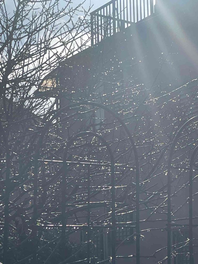 昨晩からの雪が終わり 凍った大粒の露が 溶けかけて 朝日に当たってキラキラ でした