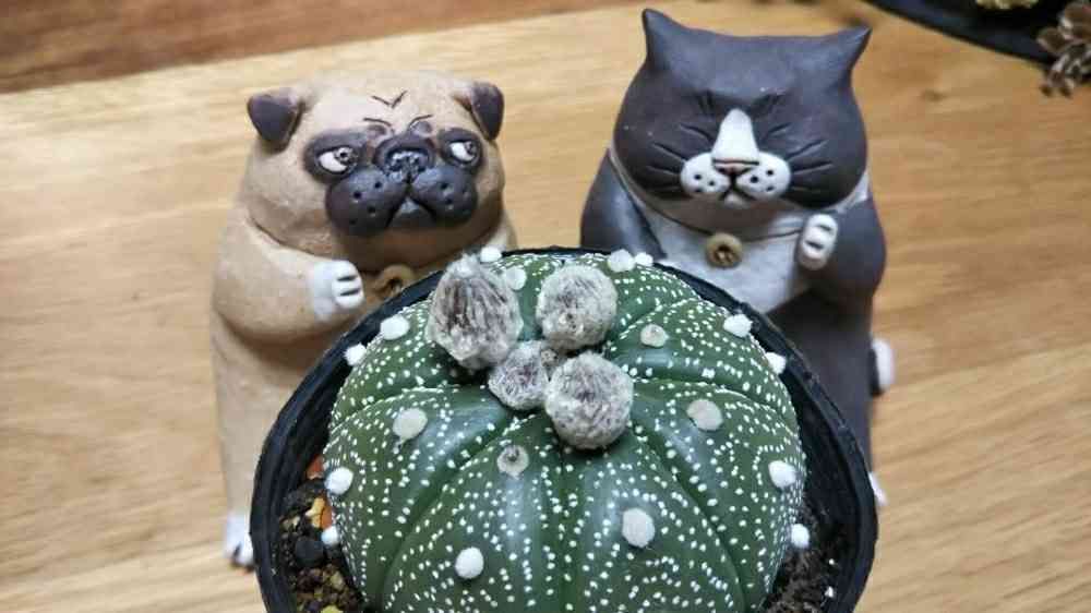 加藤弓さんの作品です✨癒されます😌写真は室内ですが、普段は外にいます🌵風通しはよいですけど、西側で直接雨は当たらない場所です。詳しくなくて、それが正解かのかもわからないです😥今のところもう1つの兜もなんとか生きてます。参考にならず、すいません😣💦⤵️