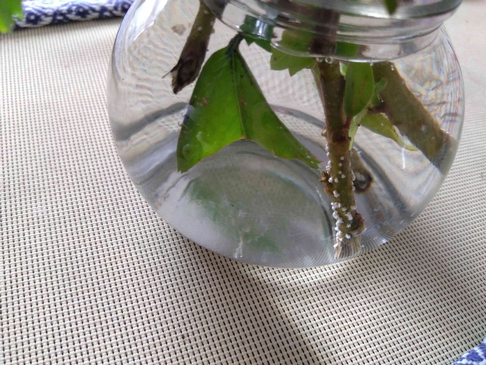 剪定したハイビスカス🌺の枝を水挿ししてます。