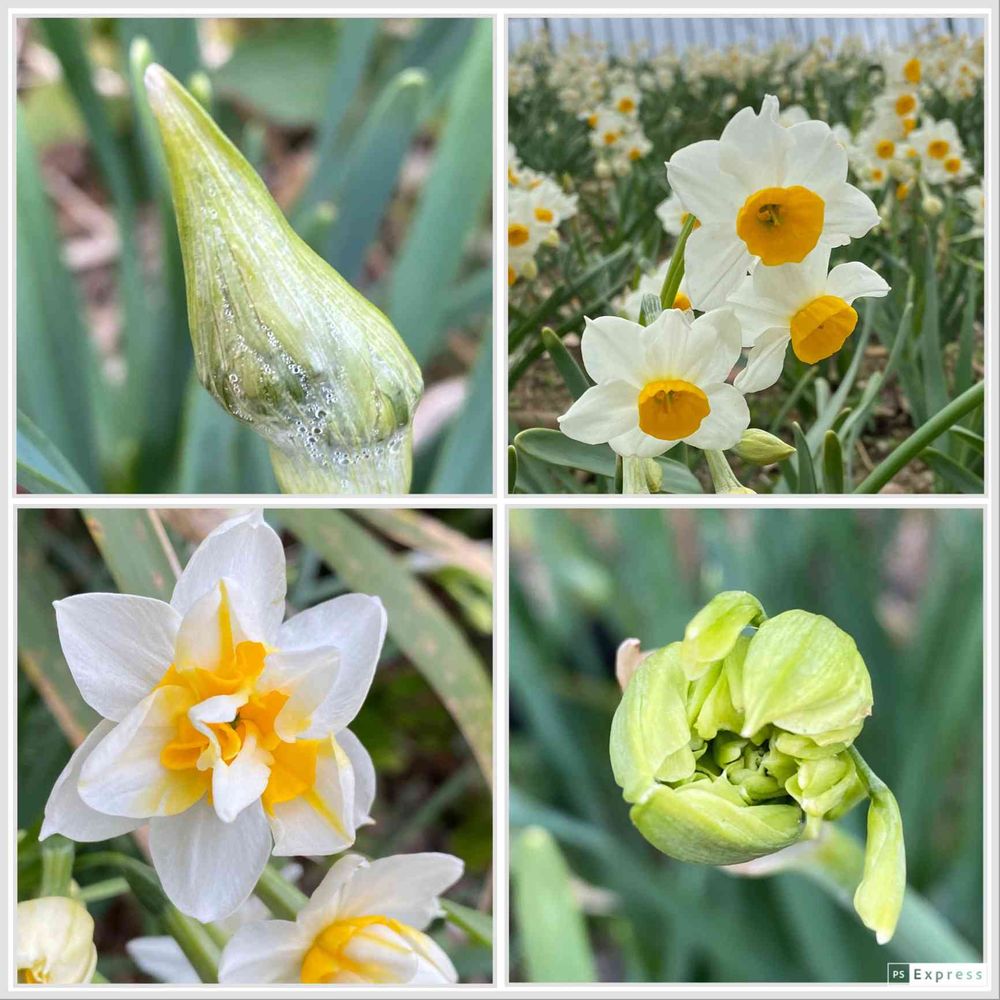 他の3枚は、海岸沿いの道端にニョキニョキと生えていた、八重咲水仙とその蕾さん💕