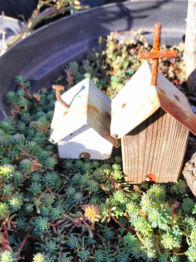 居候のセダム達、栄養満点の薔薇の土がお気に入りみたい😘