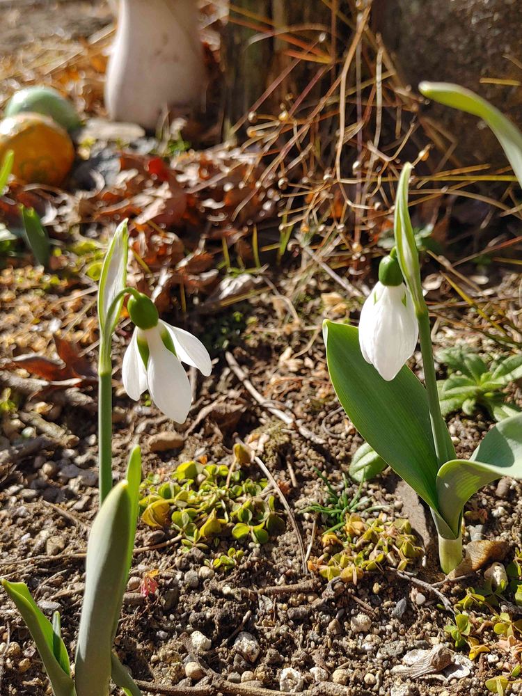 しばらく寒い日が続いていたので、庭を観察していませんでした😆いつの間にかスノードロップたちが咲いていましたよ😊可愛いですね✨
