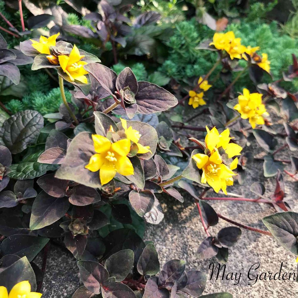 駐車場端の花壇にある、リシマキア ミッドナイトサン✨