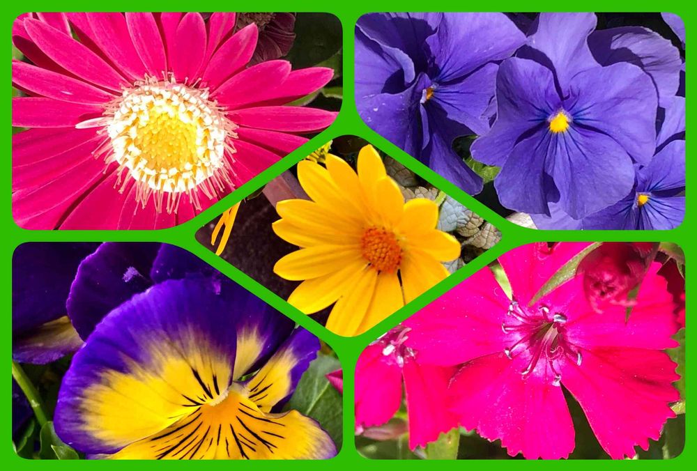 ピンク色のお花の撫子とガーベラのお花と🌸パンジー黄色いオステオスペルマム.キララさん集合させたので、華やかになりました*\(^o^)/*