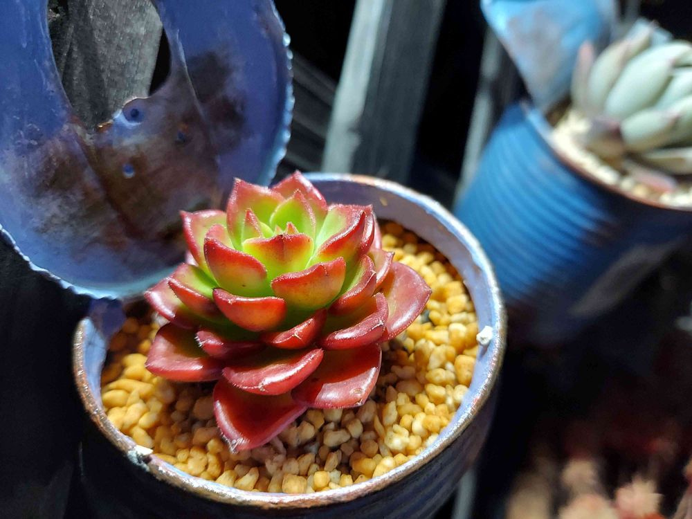さんの投稿見て、あわてて綺麗なお姿の証拠写真撮って、お家に入れました😉 土もまだ湿ってるから、危なかったです。色が変わる多肉ちゃんは寒いの大丈夫だと何となく思ってたら、今日はお迎えしたばかりの錦晃星を凍らせてしまってました。反省活かせず…