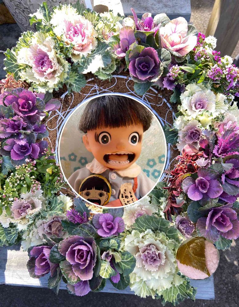 まことちゃんを葉牡丹リースの中心に入れちゃうとはっ❗️🤣🤣