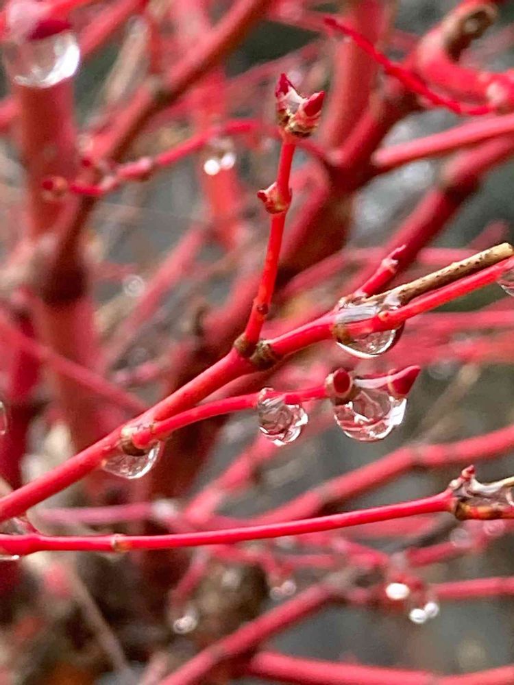 真っ赤な枝にイルミネーションみたいですね💞😄💕🫧✨