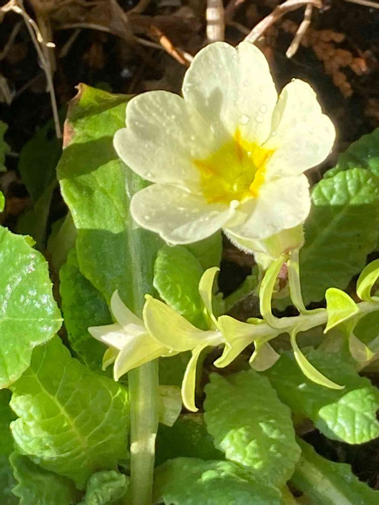 放ったらかしのプランターに一昨年からの小さなプリムラさん咲きました💓