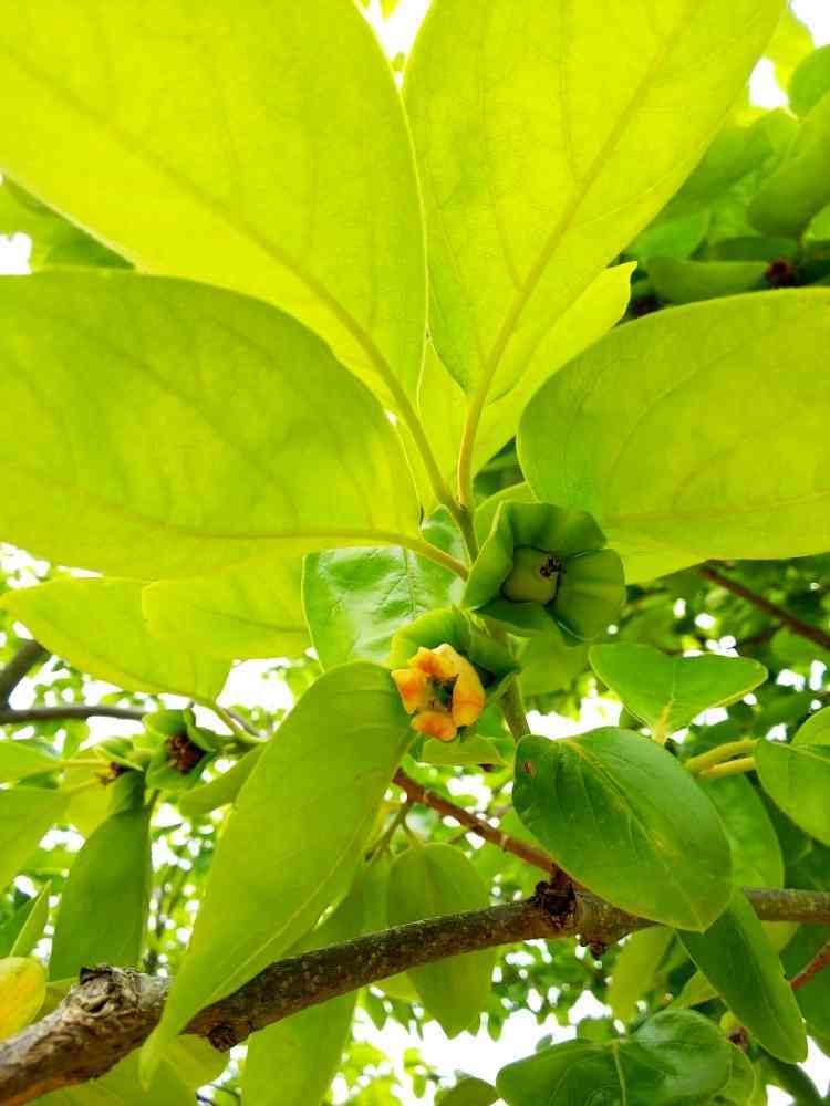 いつもお参りの時に見ている柿ノ木に花が咲いていました❗️柿の花って始めて見たかも⁉️
