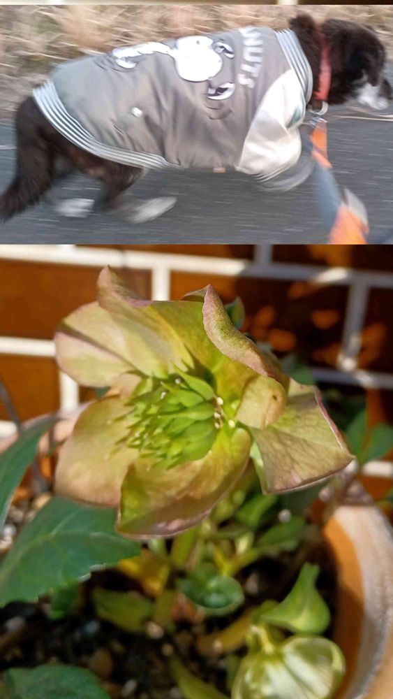 ☝️…クリスマスローズのマリア様~1番最初に咲いた花が緑色になってます…土の中からゆっ~くりと次の蕾が首をもたげてますが…なかなか😅