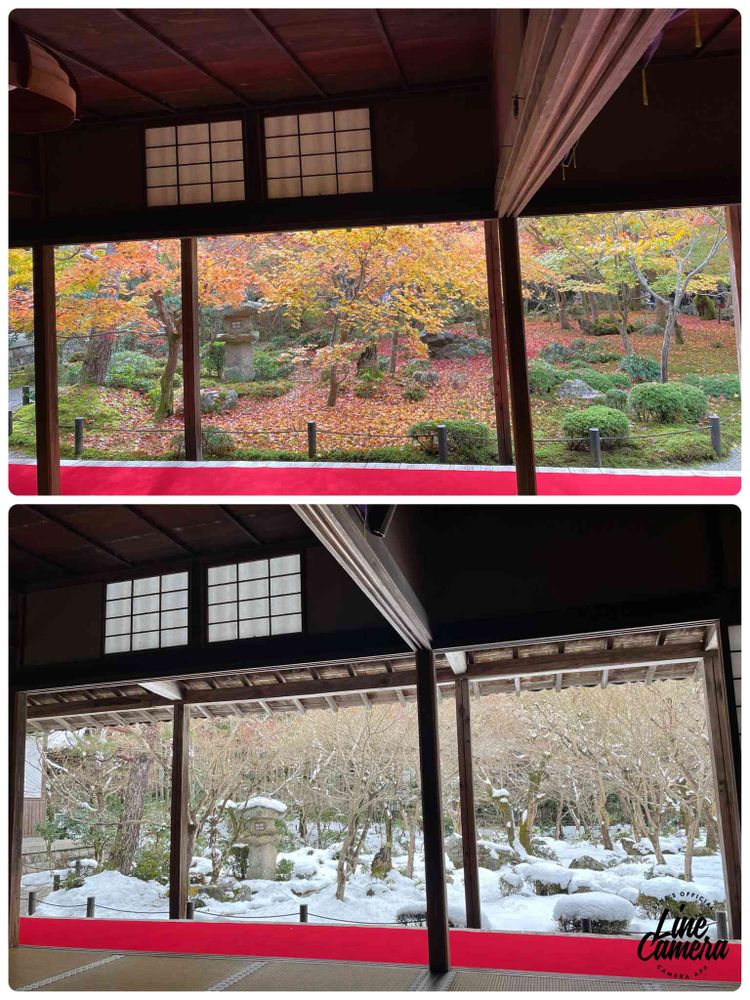 秋〜敷紅葉🍁 冬〜雪景色の庭❄️ とても美しいでした✨