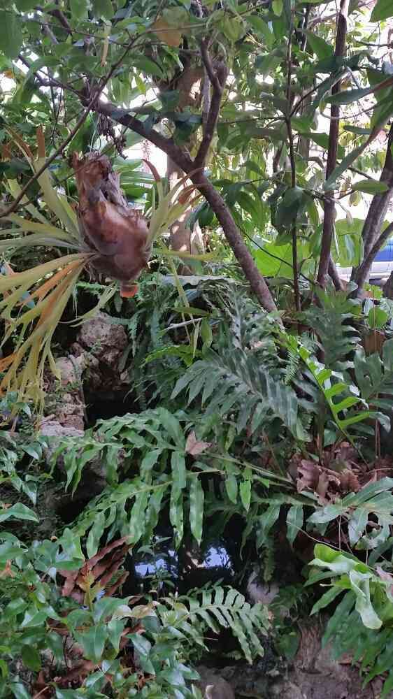 小さな池ですが木に覆われて最適な木漏れ日なのでビカクシダも喜んでくれていると思います。