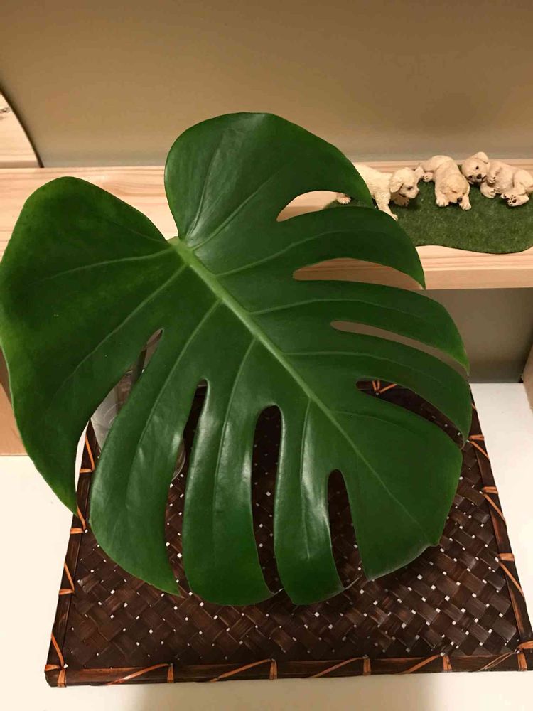 私も玄関に切り花のモンステ大きい葉で長く飾ってます