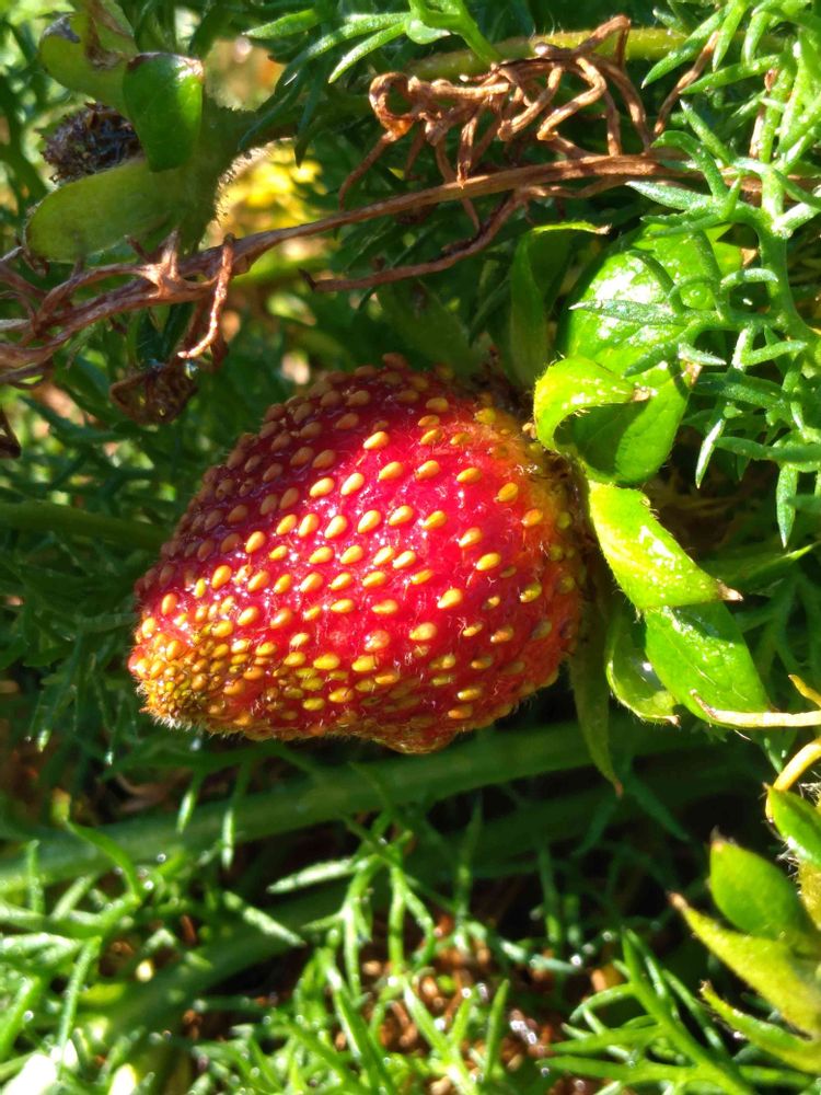 花壇の不織布をはずしたら、かわいい🍓が実っていました❣️