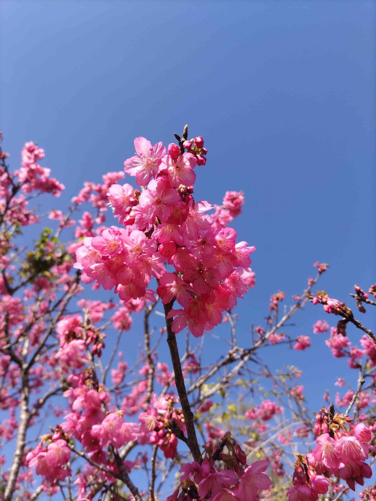 沖縄の青空🔷に鮮やかな寒緋桜🌸のピンク💗