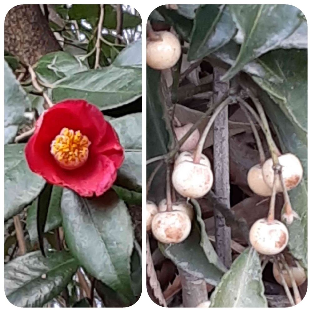 散歩中に出会ったヤブツバキと白いマンリョウꕤ…˖*