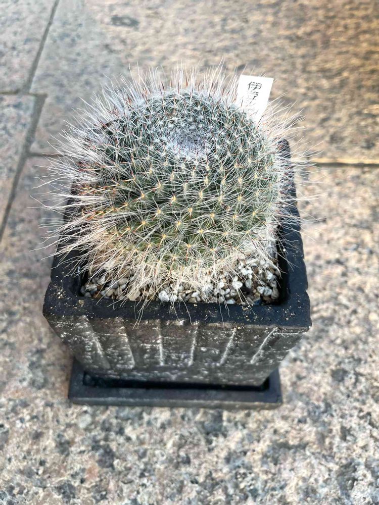去年サボテン公園で選んでお連れした🌵玉翁🌵初めにこの器を選んで数種類のサボテンを選んで持って行ったら『大きいから一つしか入りません』と言われてこういう作品になりました😅