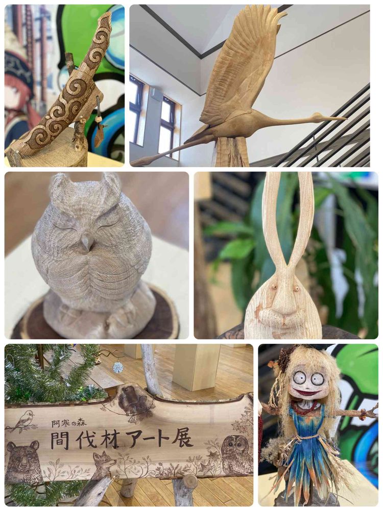 間伐材アート展🌲は 釧路市で4日間 釧路市阿寒町で 1ヶ月間 阿寒湖まりむ館というところで 開催されてました。