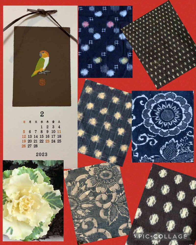 毎月1日、カレンダーと古布のコラージュを楽しみにしてます。古布がそれぞれ個性的で魅力的ですね。それとバックの朱色が華やかと気品があり、素晴らしい色合わせです。雅という言葉が浮かびました😉
