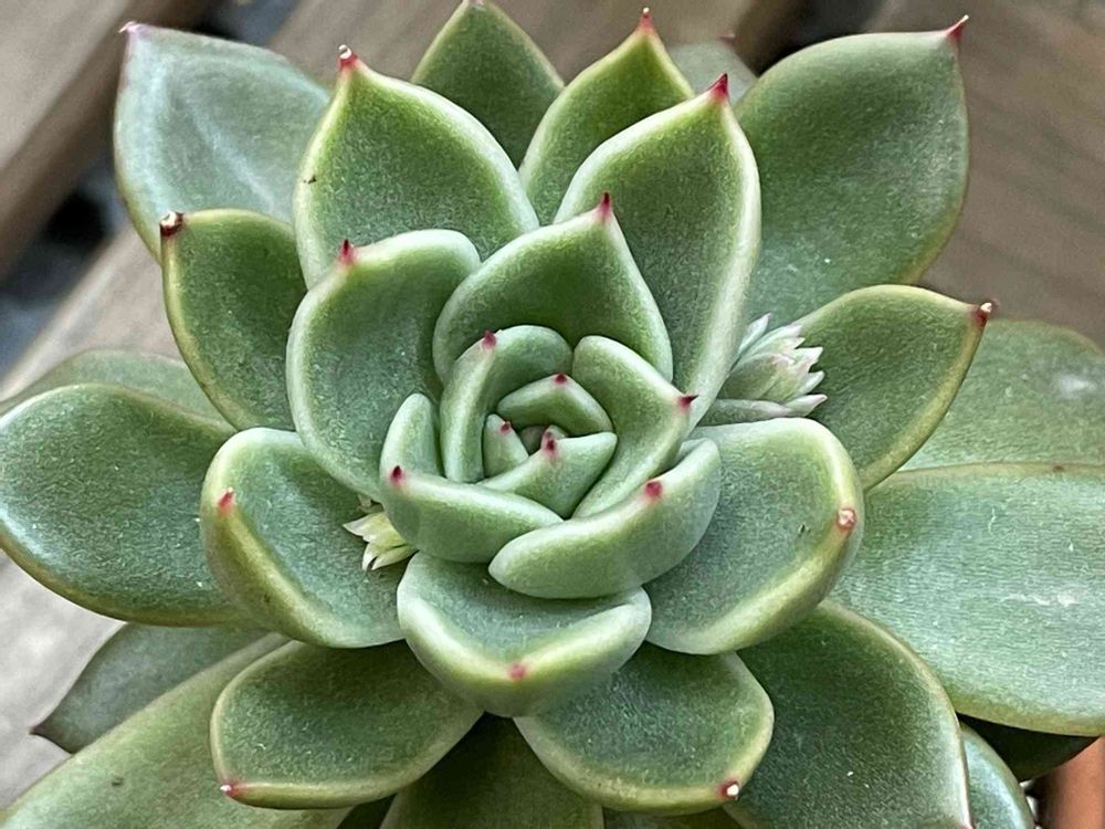 アガボイデスでは珍しく真っ赤にならないコ。でも、ミドリミドリしずきちゃってるね😅 (買った店では、「グリーンパープル系の葉、爪がほんのりピンク」と説明書き・・)