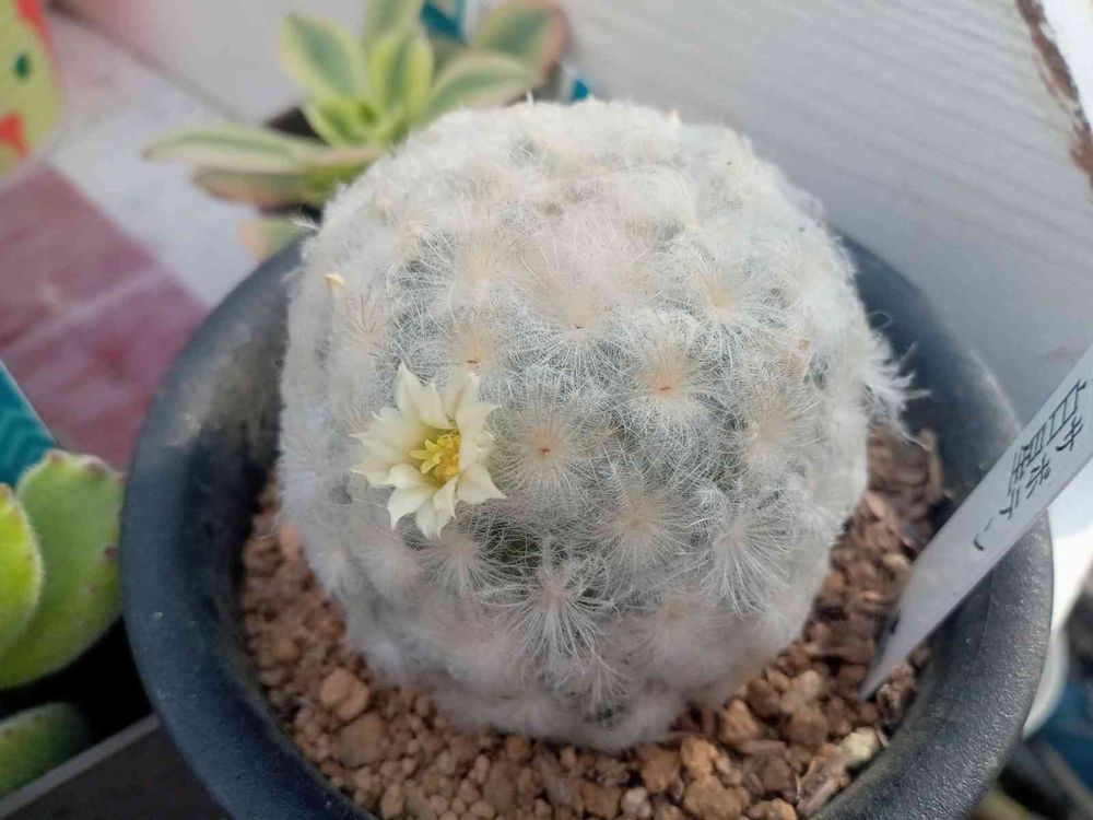 昨年夏にお迎えしたとき、周りのふわふわがお花なのかと思いましたが…こんなに可愛いお花がちょこんと咲いてくれました🙌