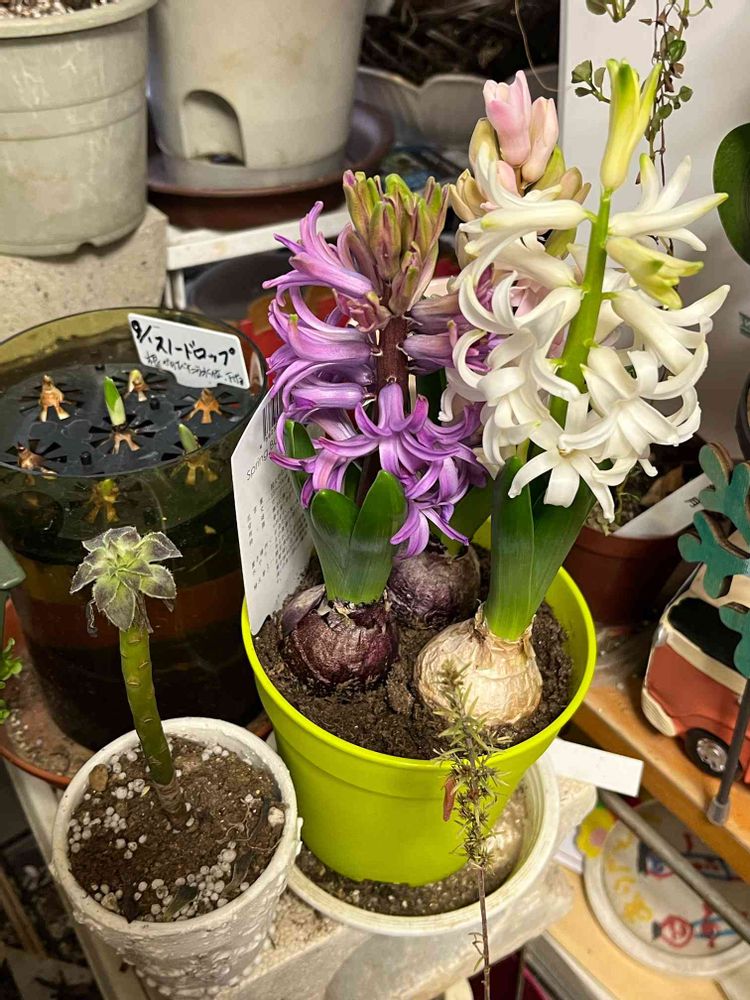 近くの園芸店に3色ヒヤシンスさんの鉢❤を買いました✨