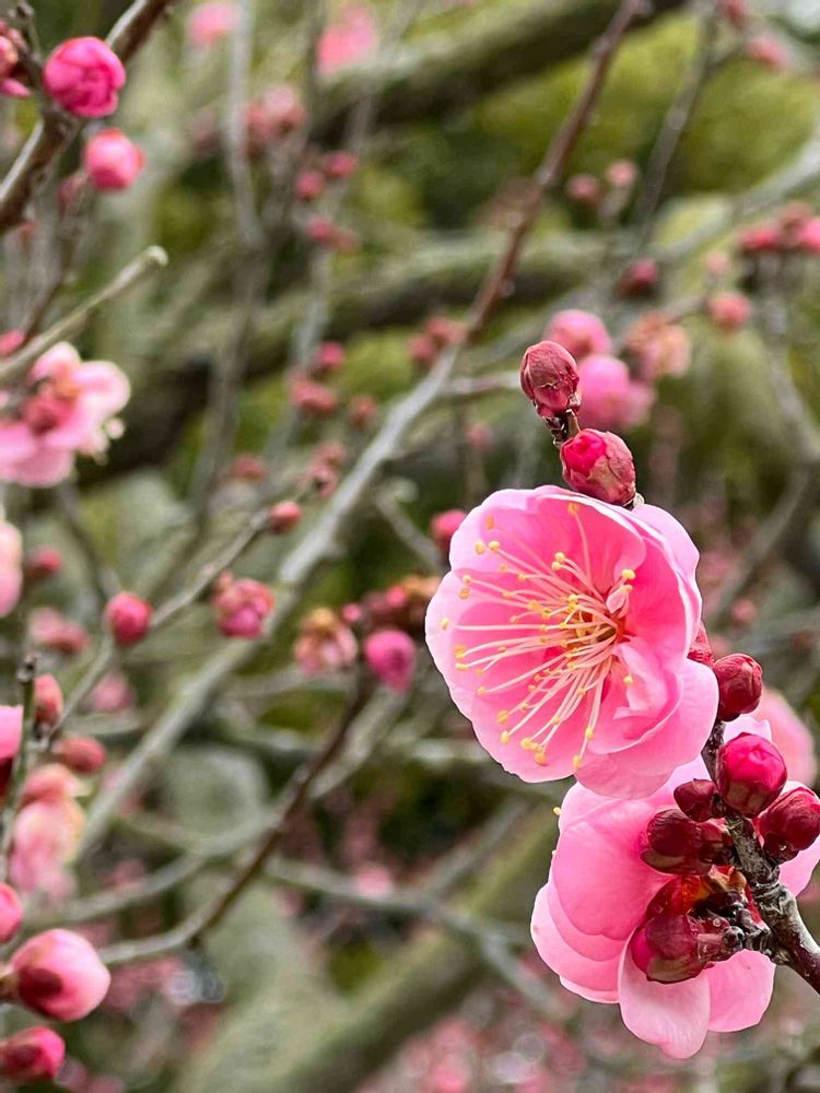 栗林公園のピンクの梅、紅梅がすっかり見頃になっていました。