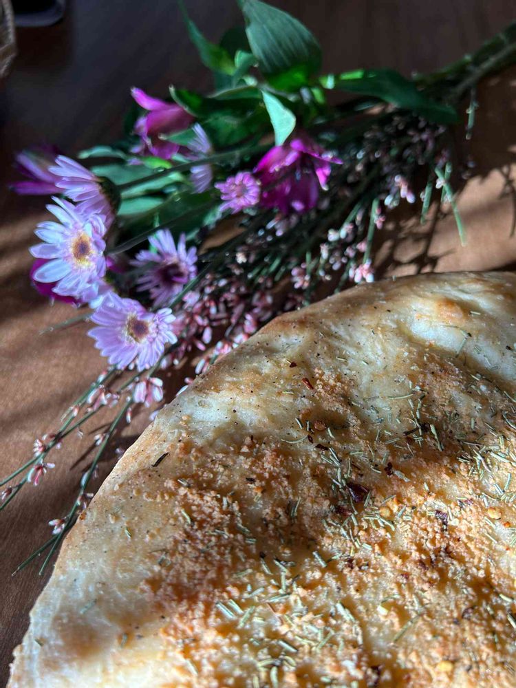ガーリック、パルメザンチーズとローズマリーが入った甘くないパンというかピザ皮に近い感じです👍❤️