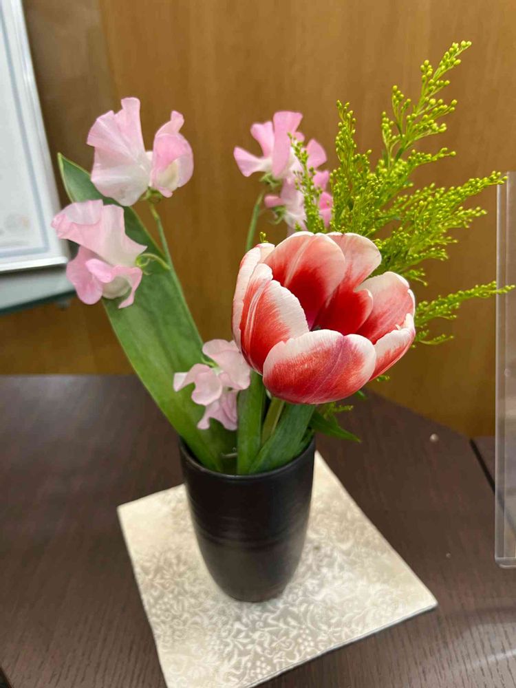 ピンクの優しい色合いのスイートピーと春の定番のお花、🌷ですね。