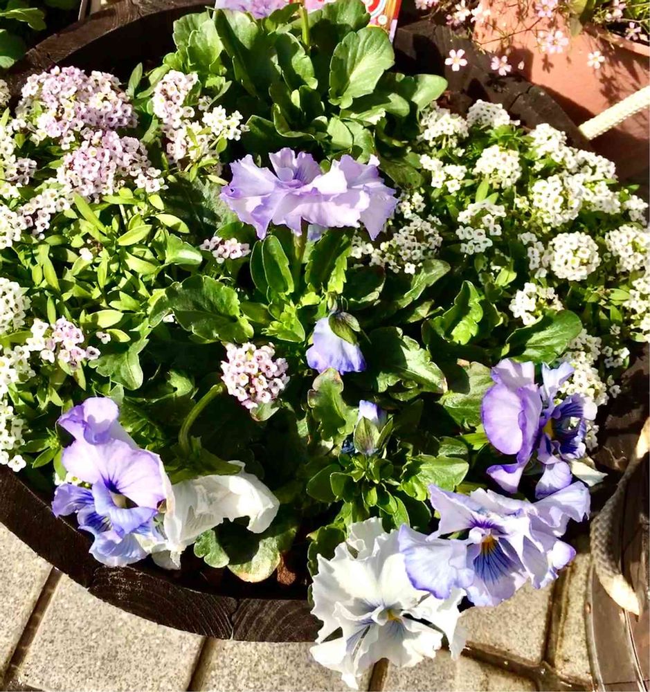 絵になるスミレ パルムとアリッサムの寄せ植えです💐