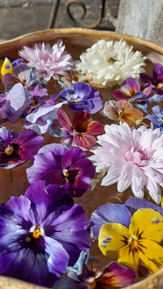 寒さで縮れてしまったビオラがもったいないから浮かべました💜