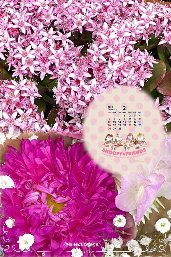 ピンクのお花とスヌーピー仲間のカレンダー、ラブリーですね💕