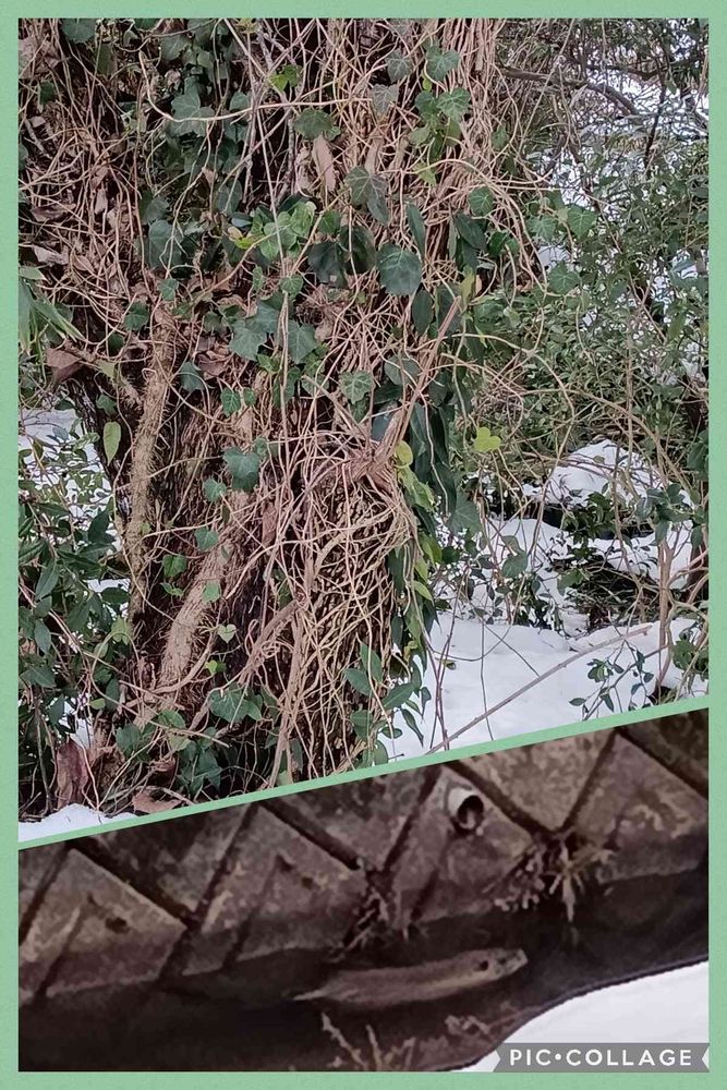(上) 雑木林にある柿の木に色んなツルが巻き付いている😧春になると、青々とした葉っぱが出てくるんだろうなぁ🌱強いわ😝