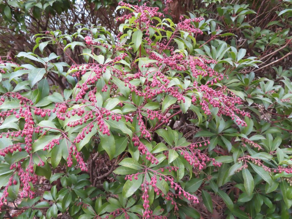 「アセビ」の蕾がかなり大きく、赤くなってきました。 パチリ