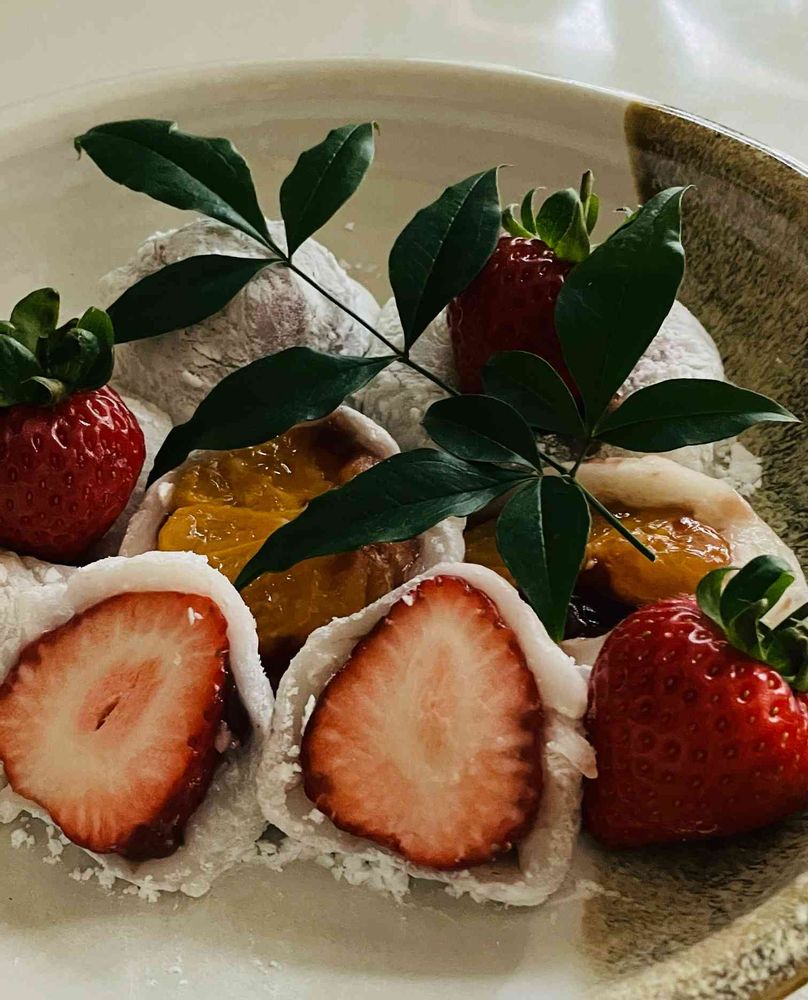 友人が巻寿司を作って持ってくると言うので先日頂いた苺で苺大福を作ってみました