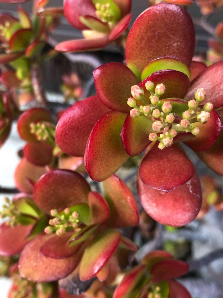 金の成る木の紅葉初めてみました🙌蕾がついてるから咲くと思います🤩家の金の成る木は蕾もなく咲く気配なしです😅花が咲いたらみせてくださいね💓💕