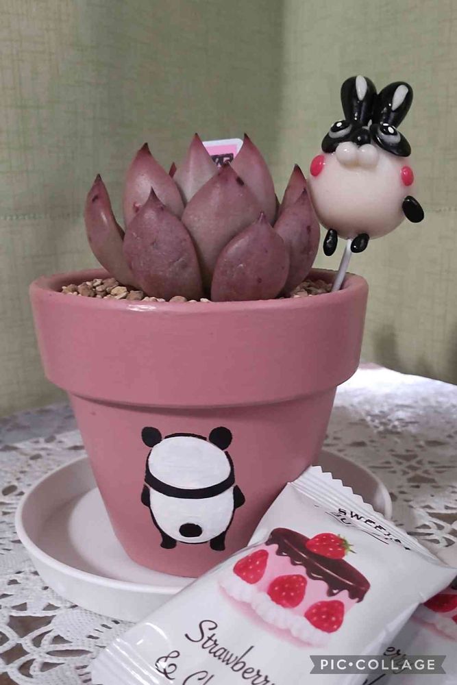 午後から、「45」さんのパンダリメ鉢、いちごさんのうさぎパンダピック、苗(ピンクハニー)、チョコが届きました💕