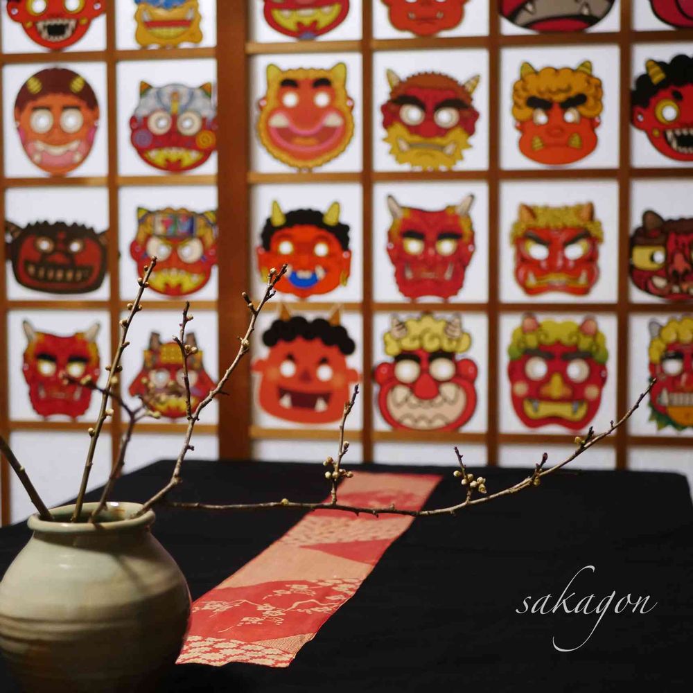 去年のsakagon さんお面の使い方見てマネっこしたくて!さて今年の豆のオマケのお面もメンバーに入れて〜