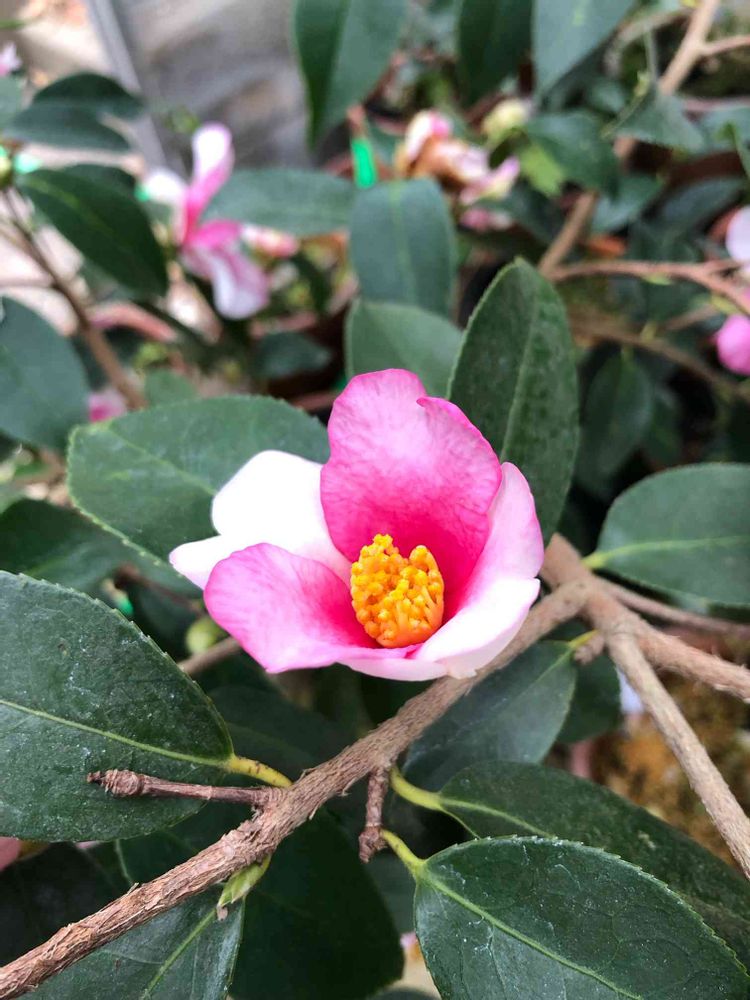 このツバキはお花は可愛いけど枝が横に張るので樹形はよくないです。