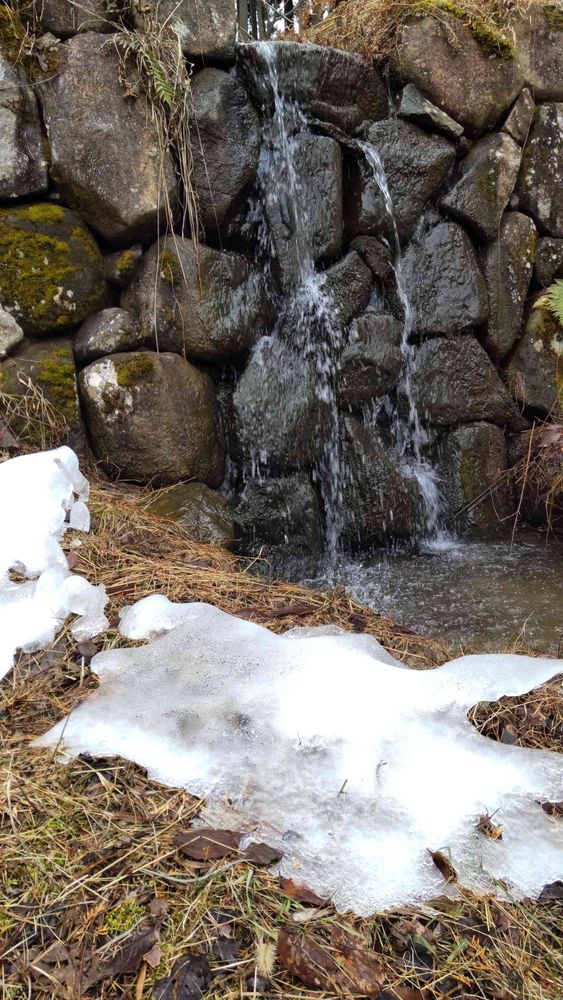 自宅前の山を散策中に、降り積もった❄が溶けて→凍って、を繰り返して出来たと思われる氷を発見。