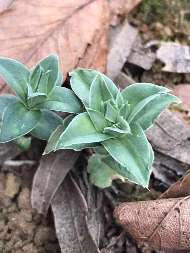 開花は例年4月中旬で、青い花を咲かせます。まだツボミは小さいです。葉っぱの色は写真のように普通の植物より若干青白い感じかな。リンドウ科です。と言うことでこの子はフデリンドウです。春待ちシリーズの中では開花は若干遅めです😊。青い花が咲くまでゆっくり待ちたいと思います。