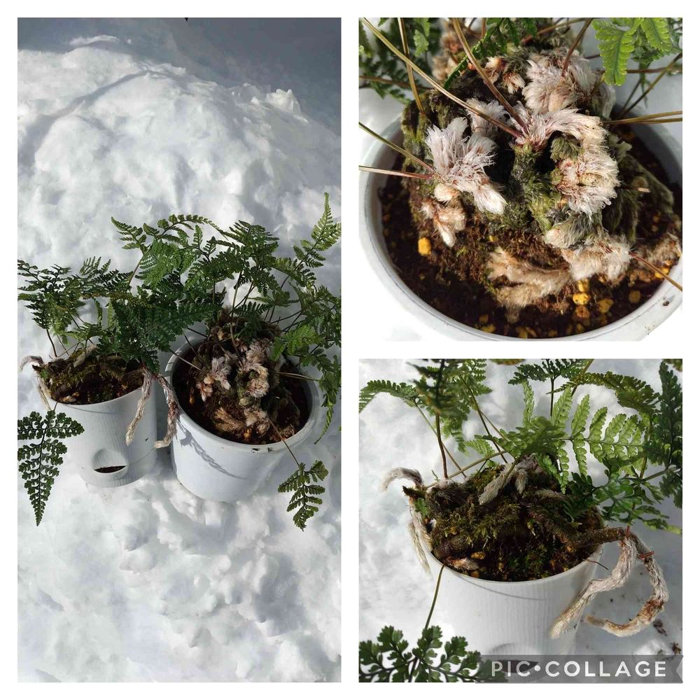 トキワシノブは寒さに強いのか?我が家では冬は玄関に置いています。暗くて狭い玄関に他の植物もあるので外の雪❄の上で撮りました😂😜