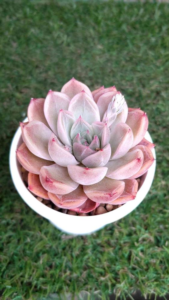 プラ鉢にきれいにおさまって、ピンク色にウォーターマークが目を引く✨