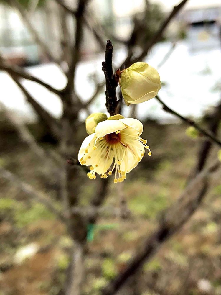 そんな冬でしたが、小さな梅の木にちらほら蕾がついてほころんでいるものも😊