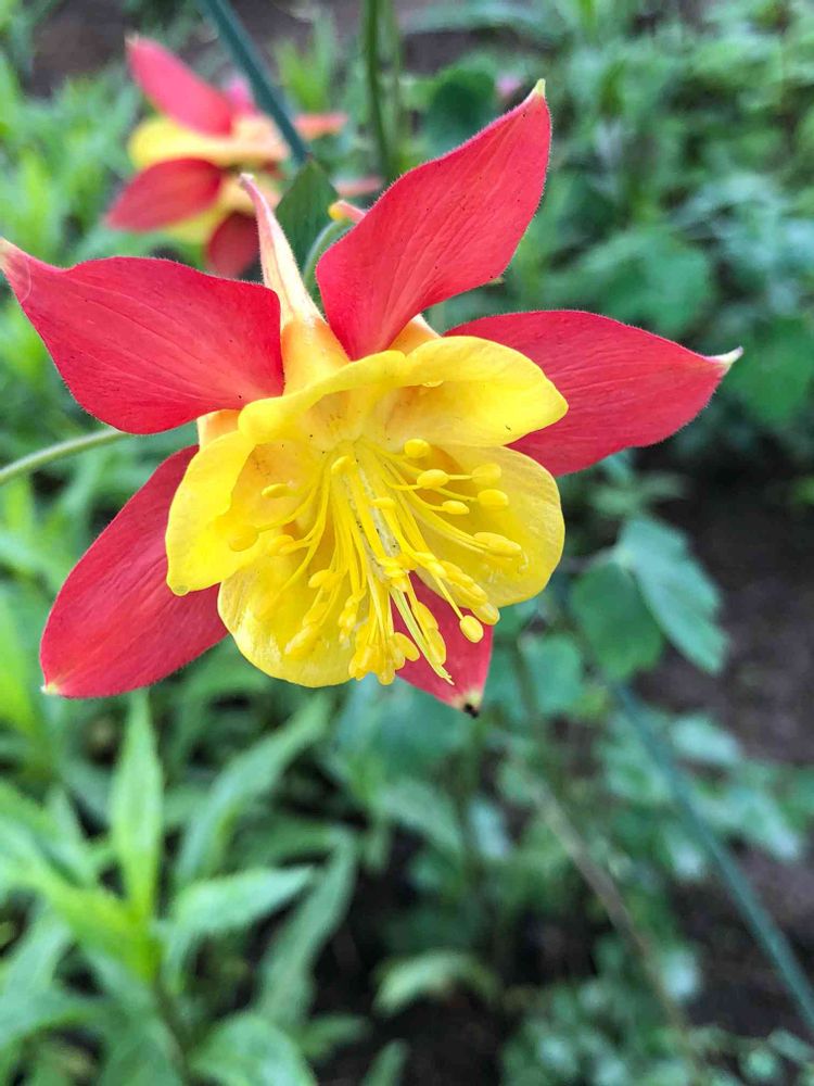 また、後ろにちょんぼの無い フウリンオダマキの八重もいます。